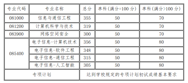 1)第一志愿报电子信息[085400]、电子科学与技术[080900]、控制科学与工程[081100]、计算机科学与技术[081200]、网络空间安全[083900]、信息与通信工程[081000]专业的考生。
