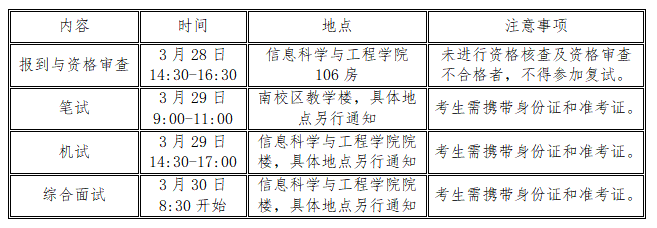 本次复试采用现场复试方式,考核形式为专业课笔试、机试085400电子信息专业-人工智能方向考生无需机试和专业综合面试。