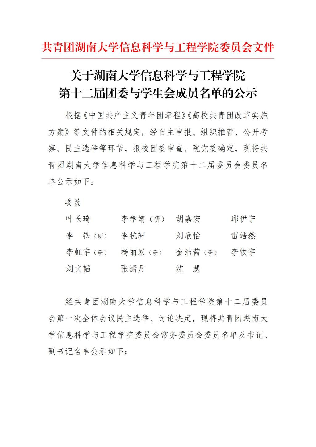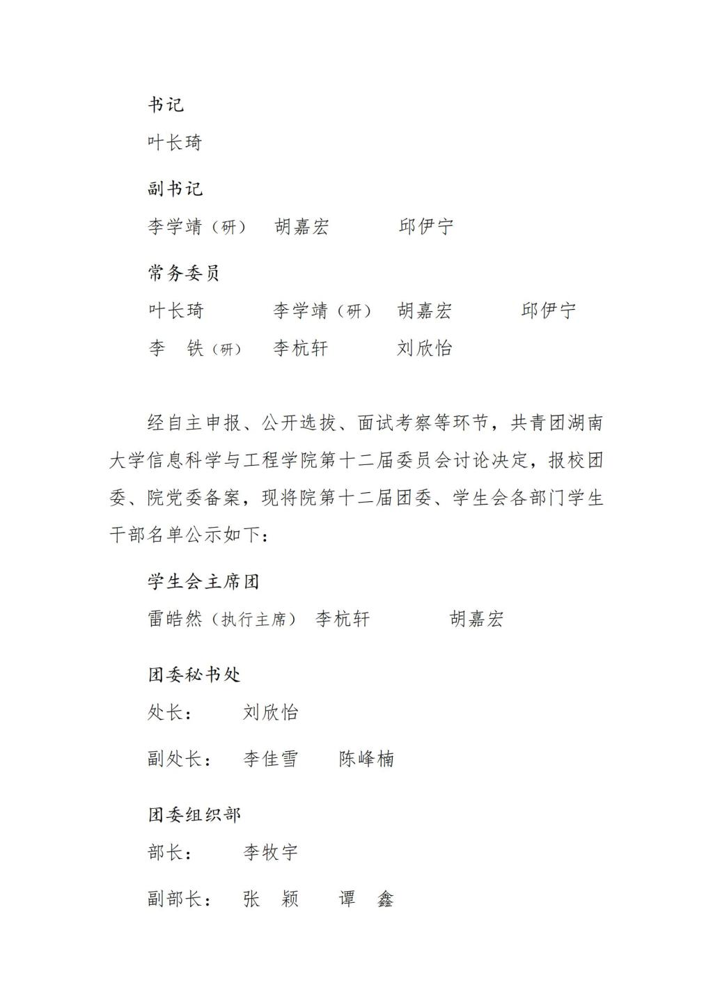 关于肉漫画 第十二届团委与学生会成员名单的公示