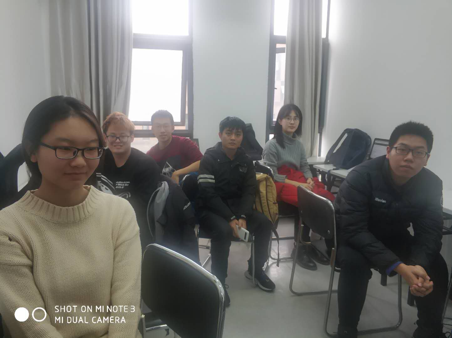 参赛队员在院楼实验室紧张工作期间的合影