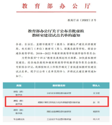信息学院赵欢教授牵头的“鲲鹏计算机系统能力培养课程群虚拟教研室”入选首批国家级虚拟教研室试点项目。