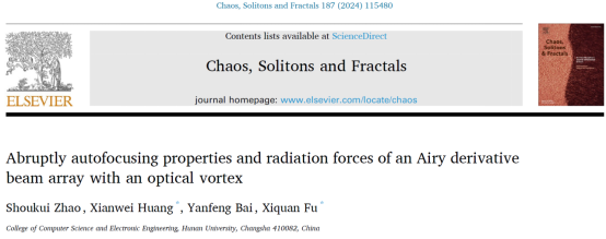 近日,Elsevier旗下权威期刊《Chaos, Solitons & Fractals》(SCI一区)在线发表了复杂环境量子信息感知及应用课题组在利用新型光束进行粒子操控研究方面的新成果,论文题为“Abruptly autofocusing properties and radiation forces of an Airy derivative beam array with an optical vortex”(Chaos, Solitons and Fractals, 187, 115480 (2024))。肉漫画