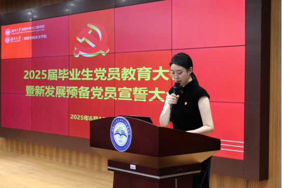 、网络空间安全学院2025届毕业生党员教育大会暨新发展党员宣誓大会在院楼401报告厅举行。信科院、网安院党委书记龚完全出席并授课,党建专干罗晓岚老师主持会议。全体新发展党员、毕业生党员参加会议。