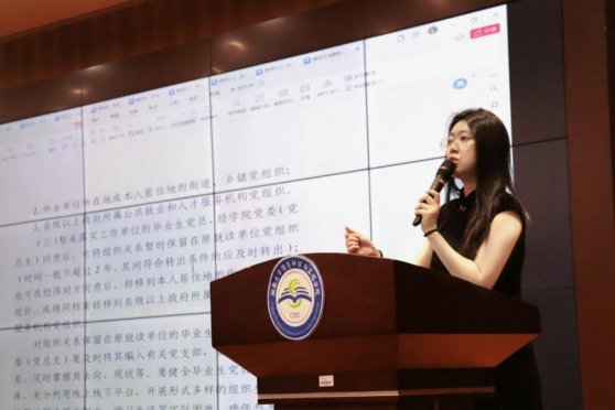 龚完全书记重点讲述了中央八项规定精神,勉励毕业生党员要严守党纪底线、锤炼党性、提高思想觉悟,扣好人生的“第一粒扣子”。同时,对毕业生党员及新发展党员表示了热烈祝贺,勉励大家要坚定理想信念,勇于担当作为,持续学习进取,以实际行动践行党的宗旨,为党和国家事业贡献力量。罗晓岚老师强调了组织关系转接的重要性,并提醒毕业生党员要认真对待、及时办理,继续发挥党员的先锋模范作用。
