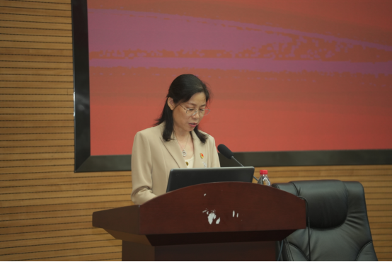 党校常务副校长兼党委组织部副部长钟叶姣同志宣读学校党委批复并讲话,她高度评价了学院过去八年所取得的成绩,并提出三点希望:一是增强政治功能和组织功能,充分发挥政治引领作用。二是落实立德树人根本任务,培养经世致用领军人才。三是扎实推进“一融双高”,赋能学院“双一流”建设。