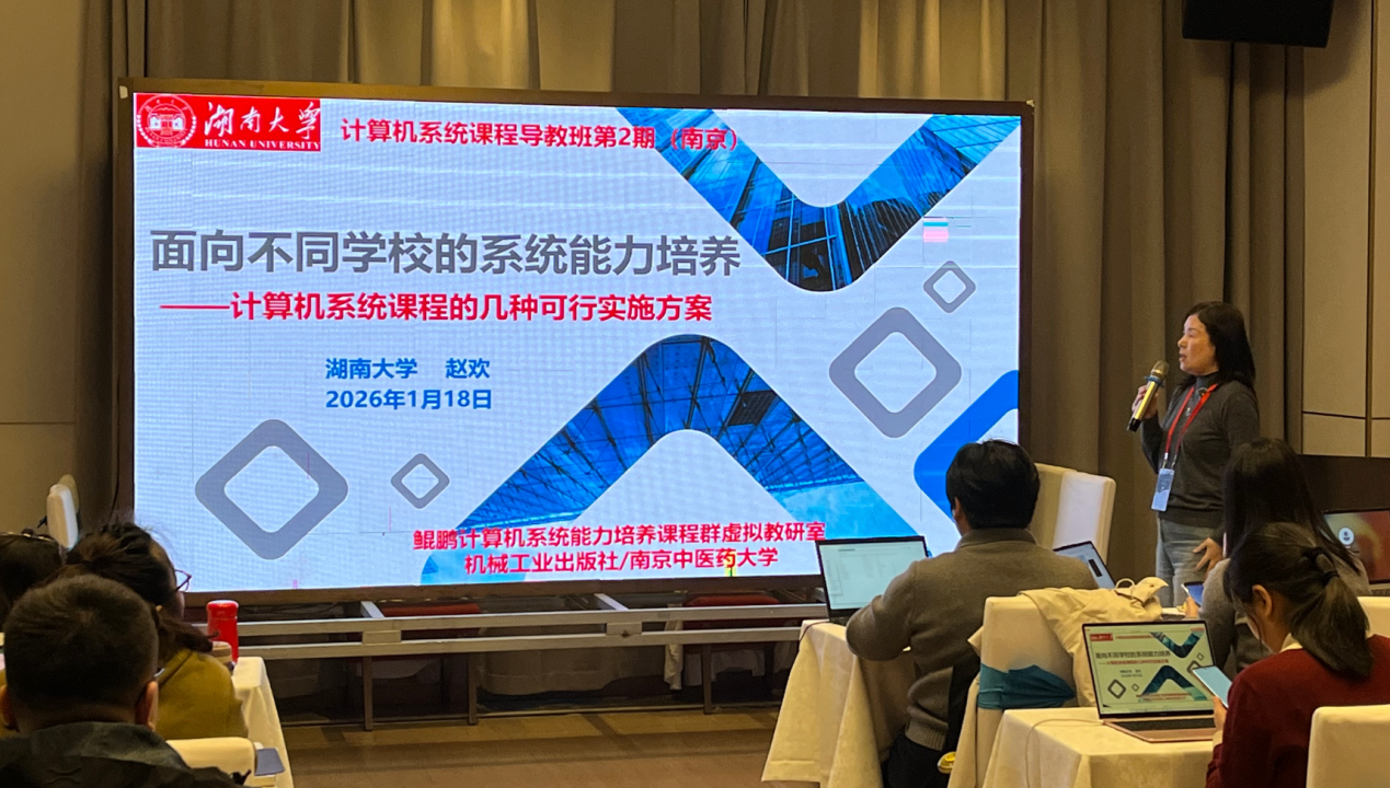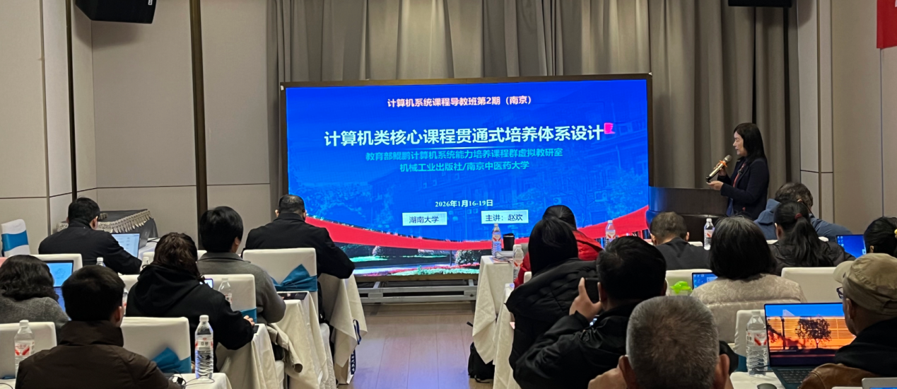 2026年1月17日至19日,由教育部鲲鹏计算机系统能力培养课程群虚拟教研室牵头,国家教学名师赵欢教授领衔,联合南京中医药大学、机械工业出版社共同主办的“2026年全国高校计算机系统课程寒假导教班(第二期)”成功举行。活动汇聚了全国20余所高校的40余位骨干教师,共同聚焦人工智能浪潮下计算机专业人才培养模式的深度变革。