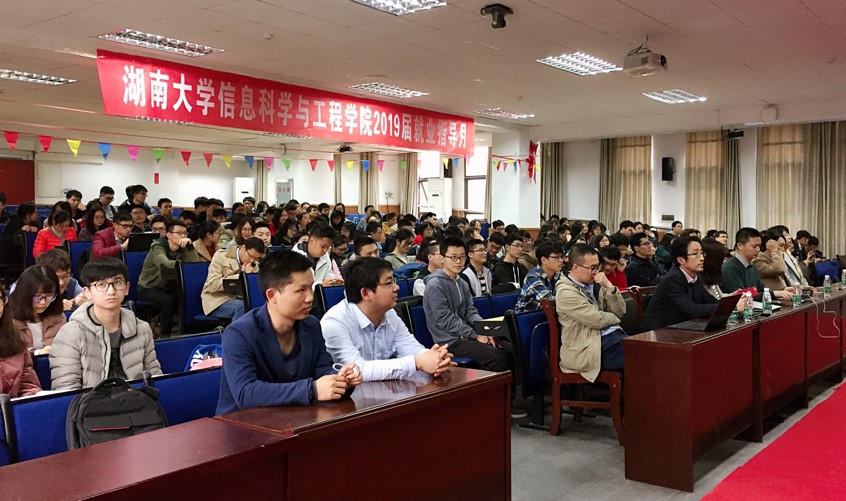 2019届就业指导月启动仪式暨第一场就业指导讲座在院楼330拉开帷幕。华为技术有限公司李国平、裴宇、周晓强、朱明、李梦颖、宋鹏飞6人专家团,和学院学工办李新星、贾玲玲、宋任刚3位老师一起,为2019届毕业生指点迷津。