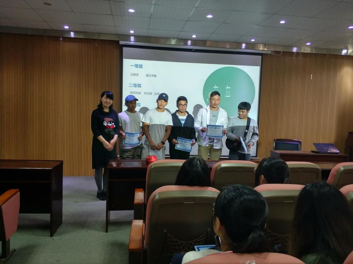 在对帮扶对象试卷评测完毕之后,于3月30日进行了本次活动的总结。15级科安年级辅导员贾玲玲老师对表现及成绩较好的同学授予奖状,并在活动的过程中采用有奖问答的形式活跃在场气氛,有少数民族同学踊跃地进行了才艺展示,给在场的同学们及老师带来了具有民族特色的舞蹈,掌声如潮。