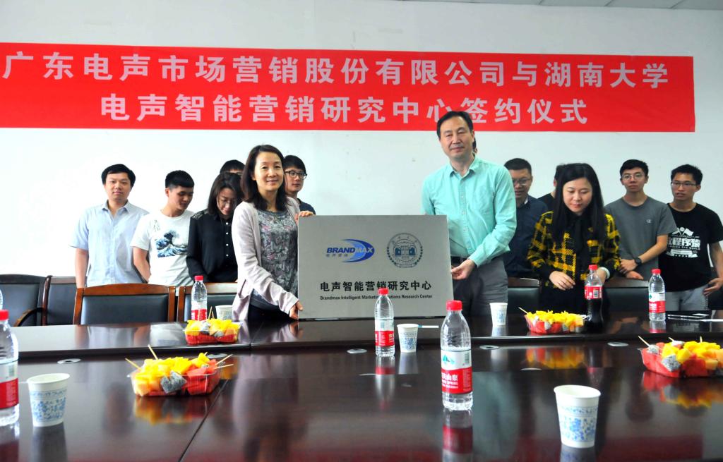 共建电声智能营销研究中心签约暨揭牌仪式在我院举行。广东电声市场营销股份有限公司联合创始人吴芳副总经理、项目总监范治华、高云峰,项目经理陈佳娜,肉漫画