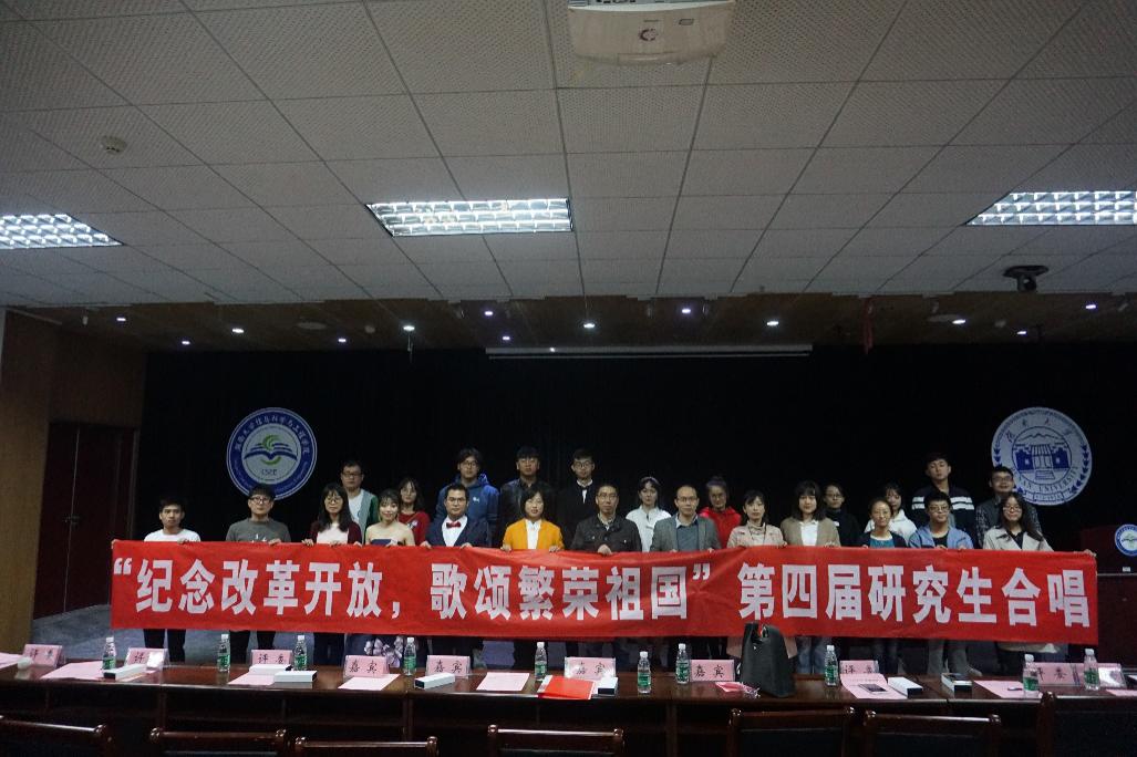 2018级全体研究生在信息院330报告厅举行以“纪念改革开放,歌颂繁荣祖国”为主题的第四届研究生合唱比赛。团体奖的评委由各系教工党支部的代表以及学院新声代社团成员代表构成,单项奖的评委由研究生二年级各系学生党支部代表构成。