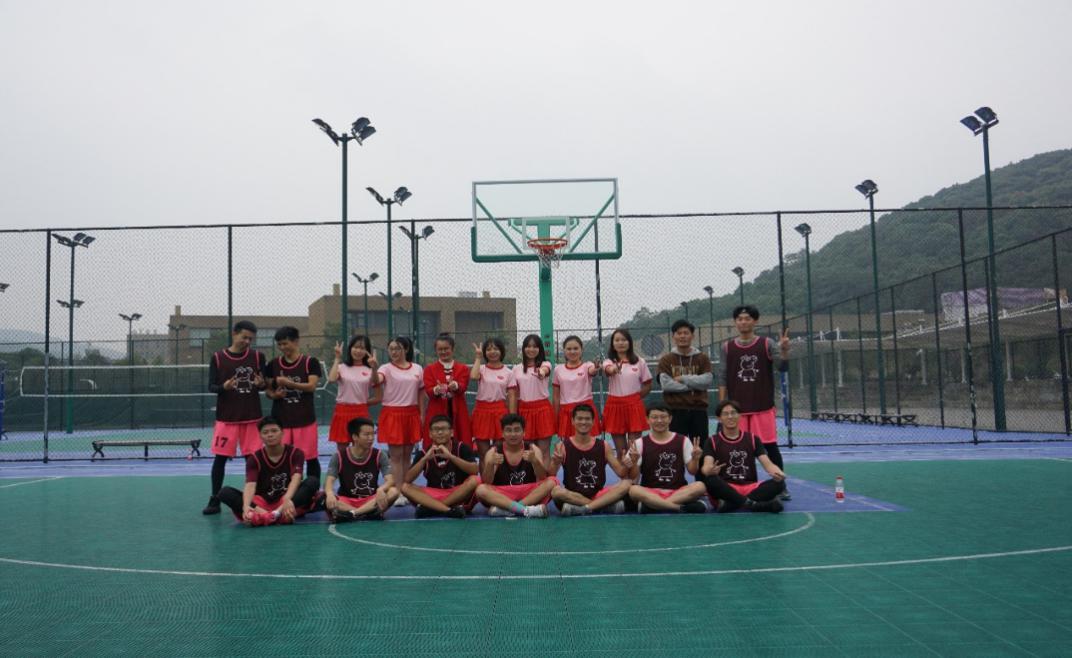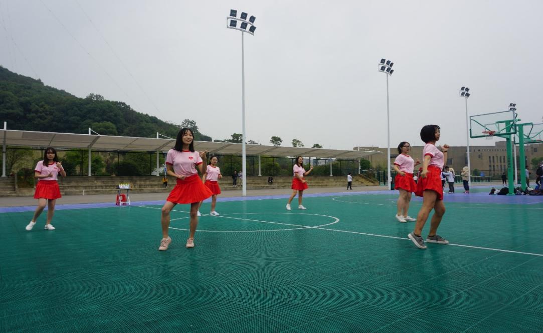 中场休息时,迎来了拉拉队表演环节。我院拉拉队队员们身着粉色上衣、红色短裙,通过一场活力四射的拉拉操表演为我院篮球队加油助威。
