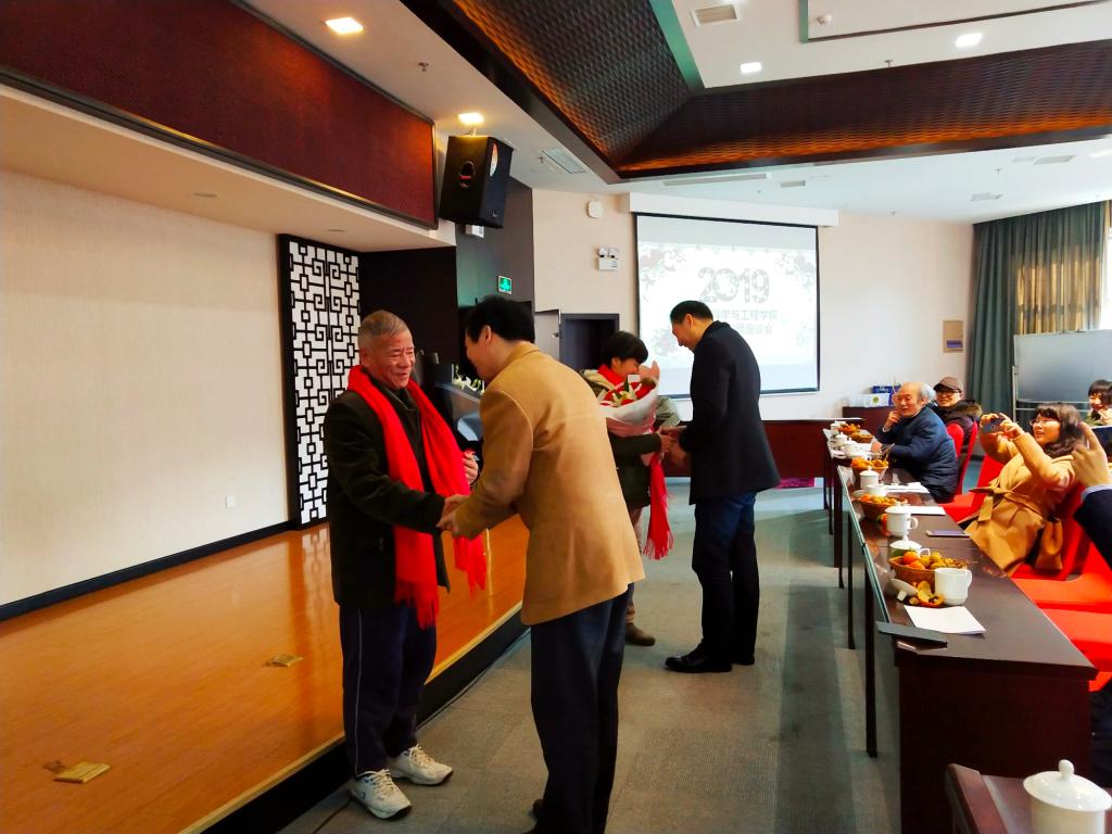 紧接着对2018年两位光荣退休的教师表示祝贺,对他们为学院的发展和建设所付出的辛勤劳动和贡献表示衷心的感谢,并为退休教师送上鲜花,赠送纪念品。李院长说到:“希望老同志们退休不退志,离岗不离心,一如既往地心系教育,心系信息院,把信息院作为自己坚强的后盾,信息院永远是大家最温暖的港湾。”