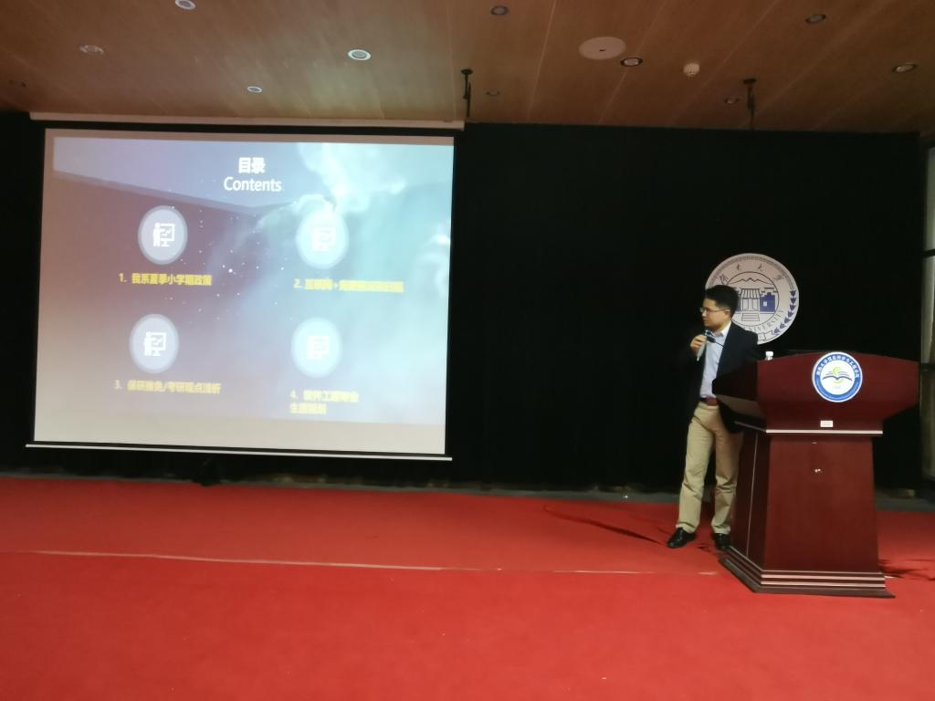随后,软件工程系主任荣辉桂老师向2016、2017级全体学生解读了2019年互联网+竞赛的背景、基本规则和时间节点,分享了连续三年团队进入国赛的一些经验,指出互联网+是综合技术、商业模式及财务等完整的竞赛项目,参与互联网+竞赛活动能给同学们带来不同的历练和收获,鼓励同学们积极报名参与互联网+等大赛。随后,细致分析了当前软件工程技术的新变革和趋势,结合我院研究生入学招考的现状,对学院的保研政策以及考研形势进行解读,指出进入研究生阶段学习已成为主流和趋势,但目前考研的难度日益增大,建议考研的同学们积极参加肉漫画