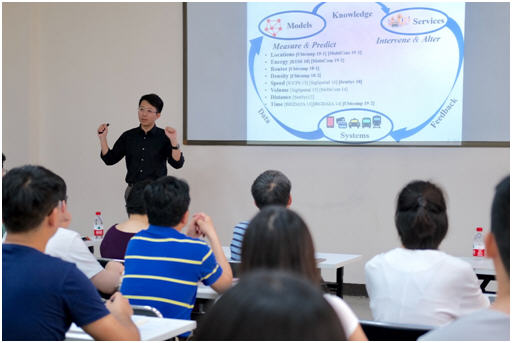 随后,张德生博士展开了其所在课题组在智慧城市背景下对城市移动物理系统的研究概述。分为以下三部分内容:1.强调了该项目的意义。 根据白宫智慧城市倡议,该项目旨在通过大数据驱动的分析来应对新兴的城市移动挑战。2.介绍目前这方面的最新研究。主要分类两类:一是基础研究,即通过数据驱动模型来衡量和预测移动性;二是应用研究,即通过知识服务(Knowledge-enabled services)来干预和改变移动性。3.从跨域(Cross-Domain),时间(Temporal)以及空间(Spatial)三个维度上分别介绍了自己的研究在城市移动物理系统研究方面的最新进展。