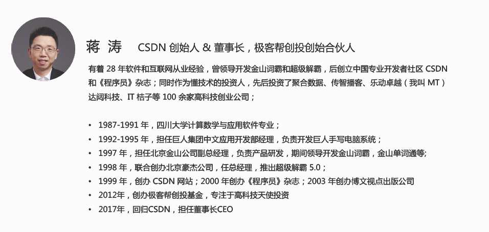 蒋涛 (CSDN创始人&董事长,极客帮创投创始合伙人)