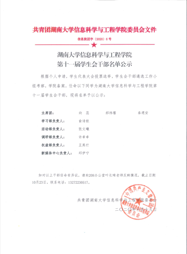 肉漫画 第十一届学生会干部名单公示