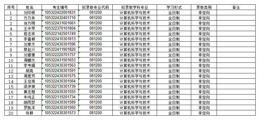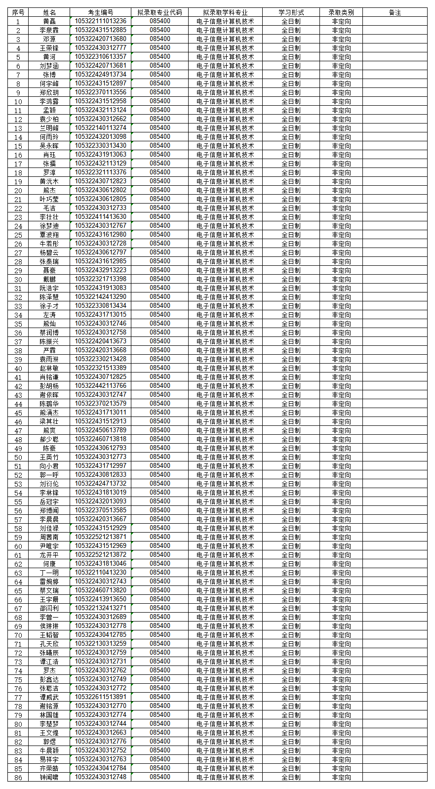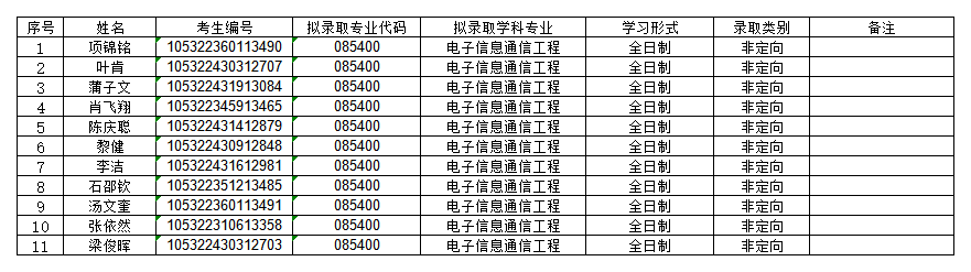 2022年硕士研究生复试录取工作实施细则》,经学院研究生招生工作领导小组审定,现将2022年全国统考硕士研究生拟录取建议名单予以公示(不含推免生)。公示期4月8日—4月21日(10个工作日)。公示期内,如对公示名单有异议,可在公示期内以书面形式向信息科学与工程学院研究生办公室进行反映,学院将及时调查、复核并回复考生。