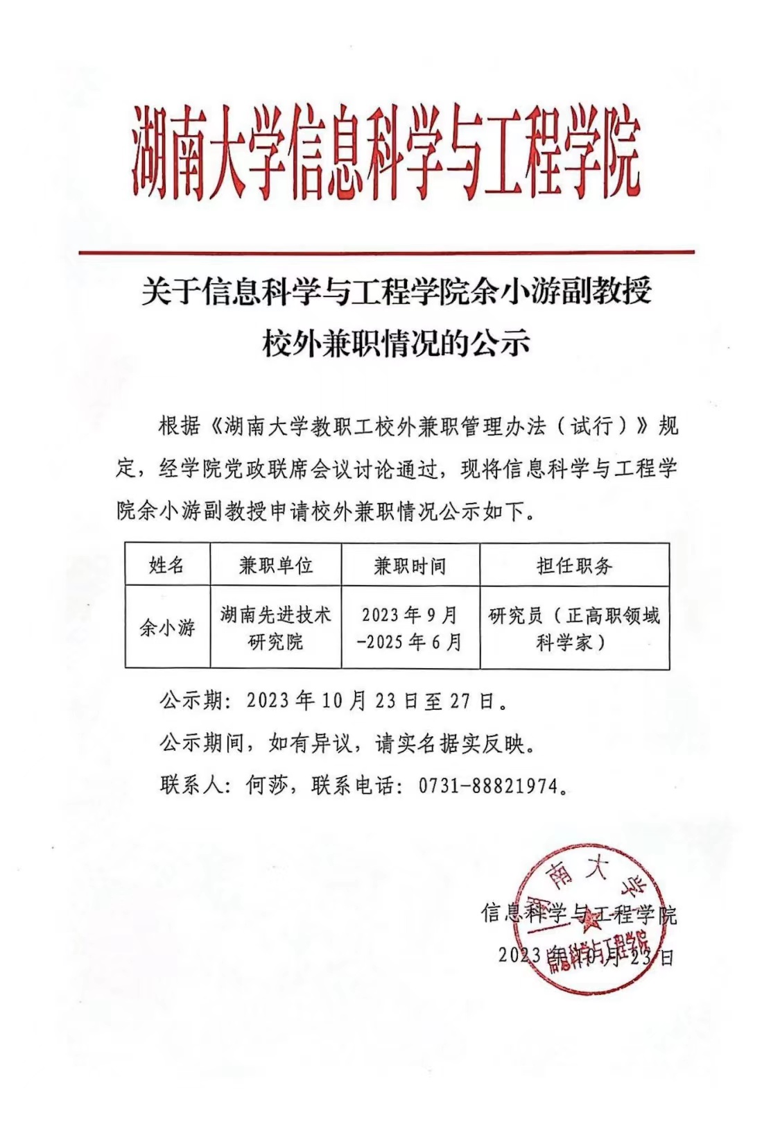 关于肉漫画 余小游副教授校外兼职情况的公示