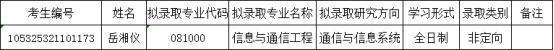 根据《肉漫画 2025年硕士研究生招生复试工作实施细则》,经学院审定,学院按专业初试+复试总成绩由高到低递补拟录取考生岳湘仪(考生编号105325321101173,拟录取专业信息与通信工程,总成绩513.00)。