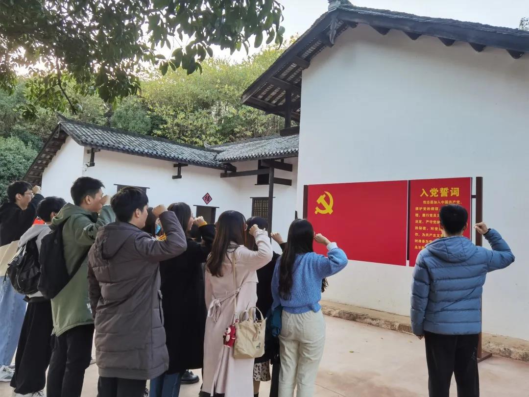集中学习后,全体学生党支部书记前往肖劲光故居开展了实地研学。每一个展台前,每一件实物边,每一张定格历史的照片旁,支部书记们带着信仰和使命重温红色历史,感悟精神伟力。在肖劲光故居前坪,还开展了入党宣誓活动。