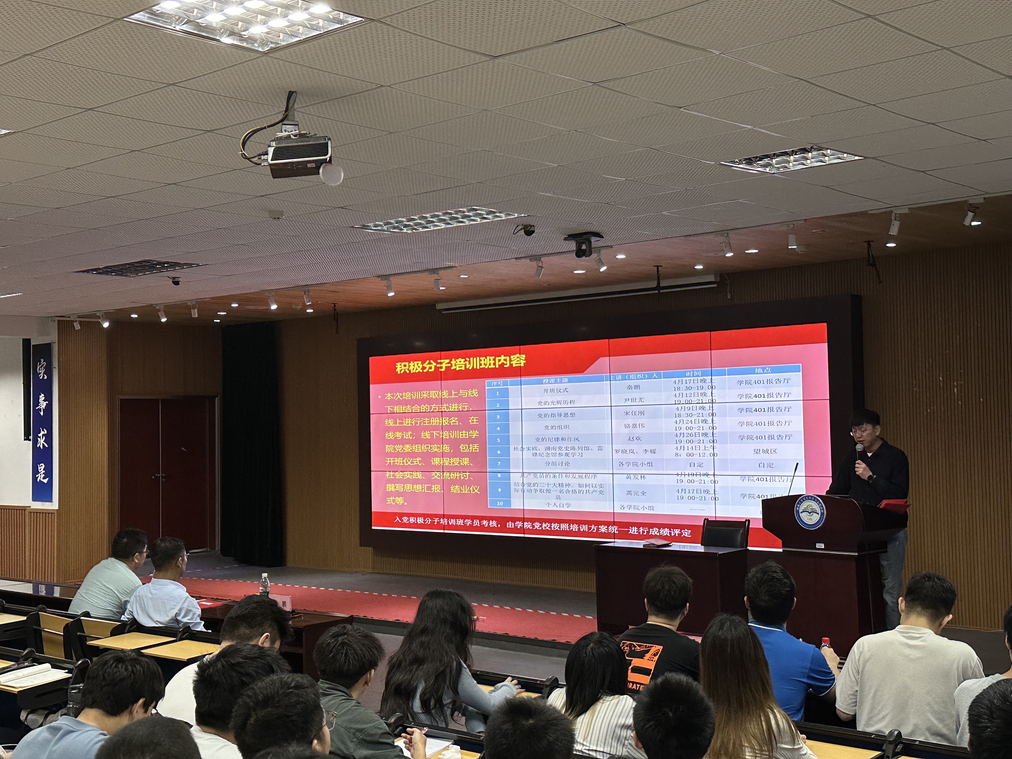 首先,本期积极分子培训班班主任宋任刚老师介绍了两个培训班的基本情况,培训班课程安排以及考核管理办法。