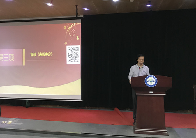 李肯立院长宣读2017年度优秀党支部、党员名单,并代表院党委对受到表彰的先进集体与个人表示热烈的祝贺,对过去一年里我院各级党组织和党员同志所取得的丰硕成果给予了充分肯定。