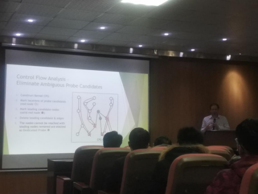 Taiwan National Chiao Tung University, Professor Xie was invited to the Department of Cyberspace Security CSEE as a special guest for three days. One of the event was the “Auto-Constructing Malware Behavior Profilers” report at Hunan University CSEE Room 542.