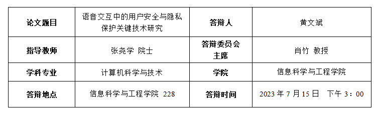 Wenbin Huang, Wenjuan Tang, Hongbo Jiang, Jun Luo, and Yaoxue Zhang. “Stop Deceiving! An Effective Defense Scheme Against Voice Impersonation Attacks on Smart Devices.” IEEE Internet of Things Journal, vol. 9, no. 7, pp. 5304-5314, 2022.(SCI 中科院1 区 Top)