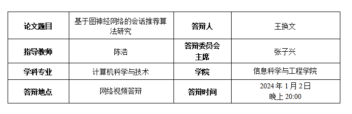 王换文,曾雅文,陈浩. 一种基于时间间隔增强的图神经网络推荐方法,申请号: 20211117332.4,授权号:CN 113821724 B(授权)