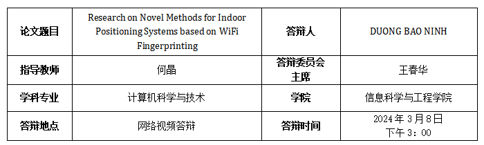 [1]. Duong Bao Ninh, Jing He, Vu Thanh Trung, and Dang Phuoc Huy, “An effective random statistical method for Indoor Positioning System using WiFi fingerprinting,” Future Generation Computer Systems, vol. 109, pp. 238–248, Mar. 2020 (SCIE-Q1).