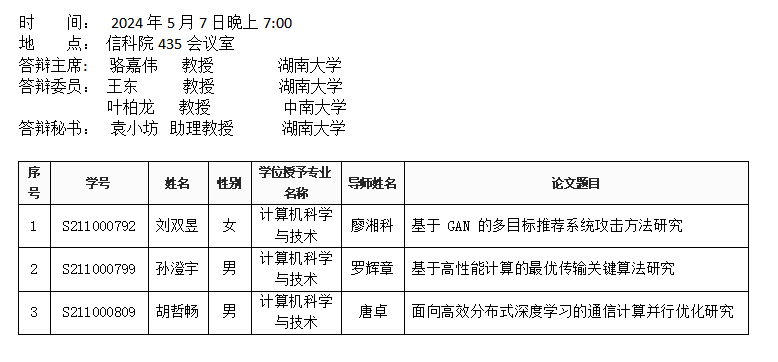 肉漫画 (计算机科学系)2024年5月7日硕士答辩公告(第一批)