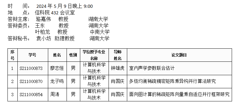 肉漫画 (计算机科学系)2024年5月9日硕士答辩公告(第一批)