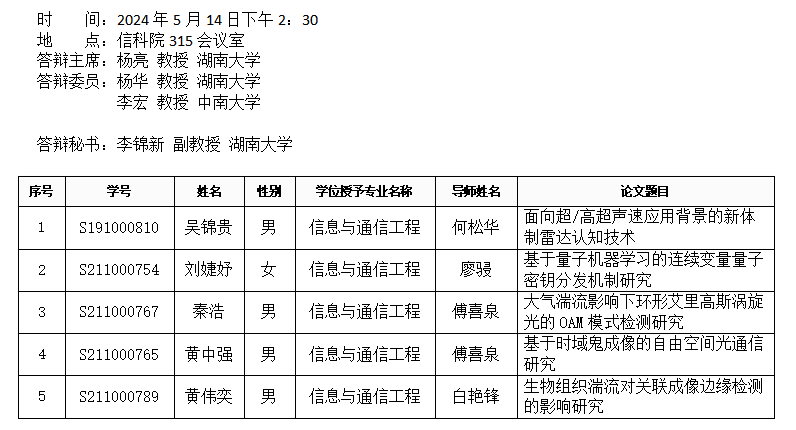 肉漫画 (通信系)2024年5月11日硕士答辩公告