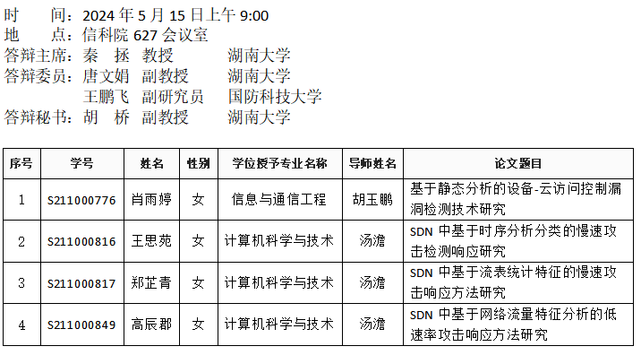 肉漫画 (安全系)2024年5月15日硕士答辩公告