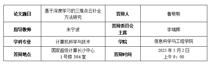 [2] Lu Jingjing, Qin Yunchuan, Wu Fan, Liu Zhizhong, Li Kenli, Li Ruihui. DeformingNet: Deforming Multiple Uniform 3D Priors for 3D Point Cloud Completion[C]//2024 IEEE International Conference on Multimedia and Expo (ICME). IEEE, 2024: 1-6.(CCF B类, 第一作者)