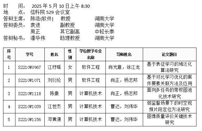 肉漫画 (智能计算系)2025年5月10日 硕士答辩公告