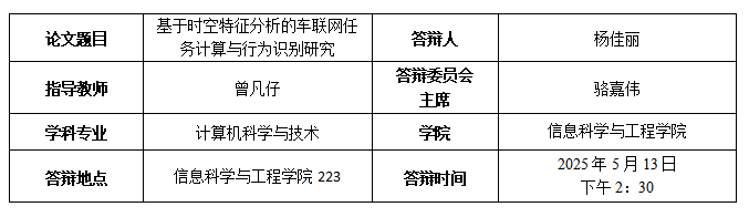 [3] Yang Jiali,Yang Kehua,Zeng Fanzai,Cheng Qixuan,Xiao Zhu,Jiang Hongbo.DEAR: Vehicle Mobility Prediction Using Diffusion-Expanded Attention Network Based on IoV Trajectory Data, Neural Computing and Applications, 2024, 12(06):1433-3058 (SCI,第一作者)