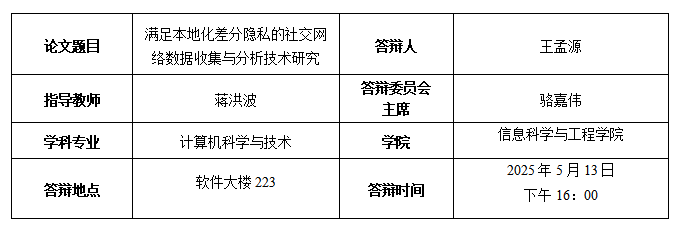[2] Mengyuan Wang, Hongbo Jiang, Peng Peng, and Youhuan Li. Accurately Estimating Frequencies of Relations with Relation Privacy Preserving in Decentralized Networks[J], IEEE Transactions on Mobile Computing, 2024, 23(05), 6408-6422. (CCF A类期刊,第一作者)
