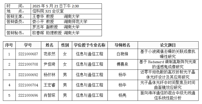 肉漫画 (通信工程系)2025年5月21日硕士答辩公告