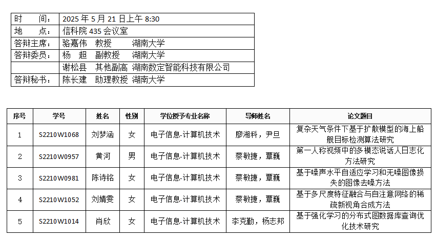 肉漫画 (计算机科学系)2025年5月21日硕士答辩公告