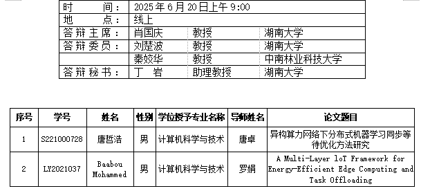 肉漫画 (计算机科学系)2025年6月20日 硕士答辩安排